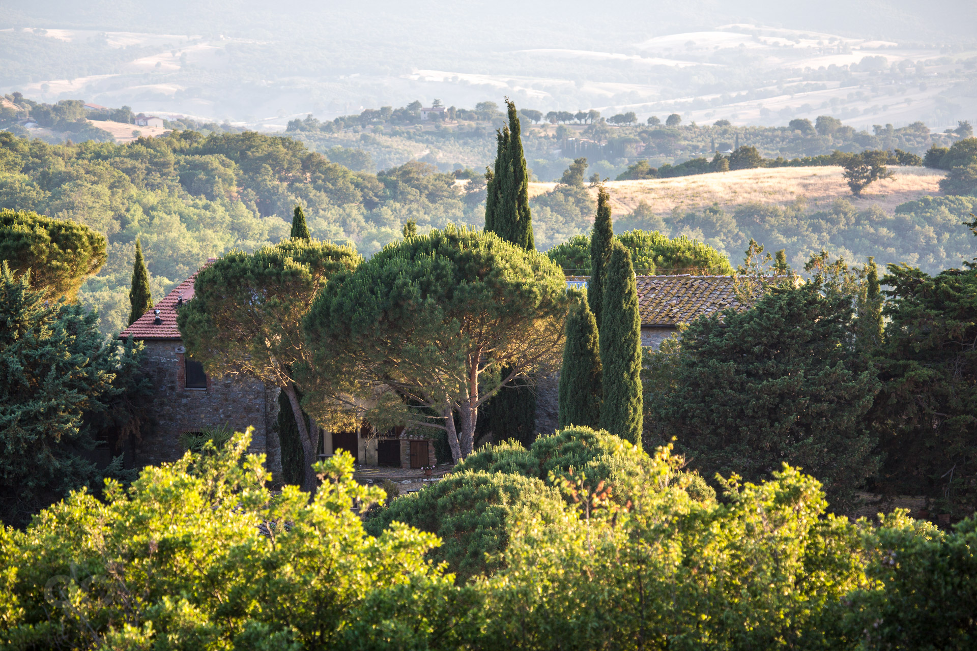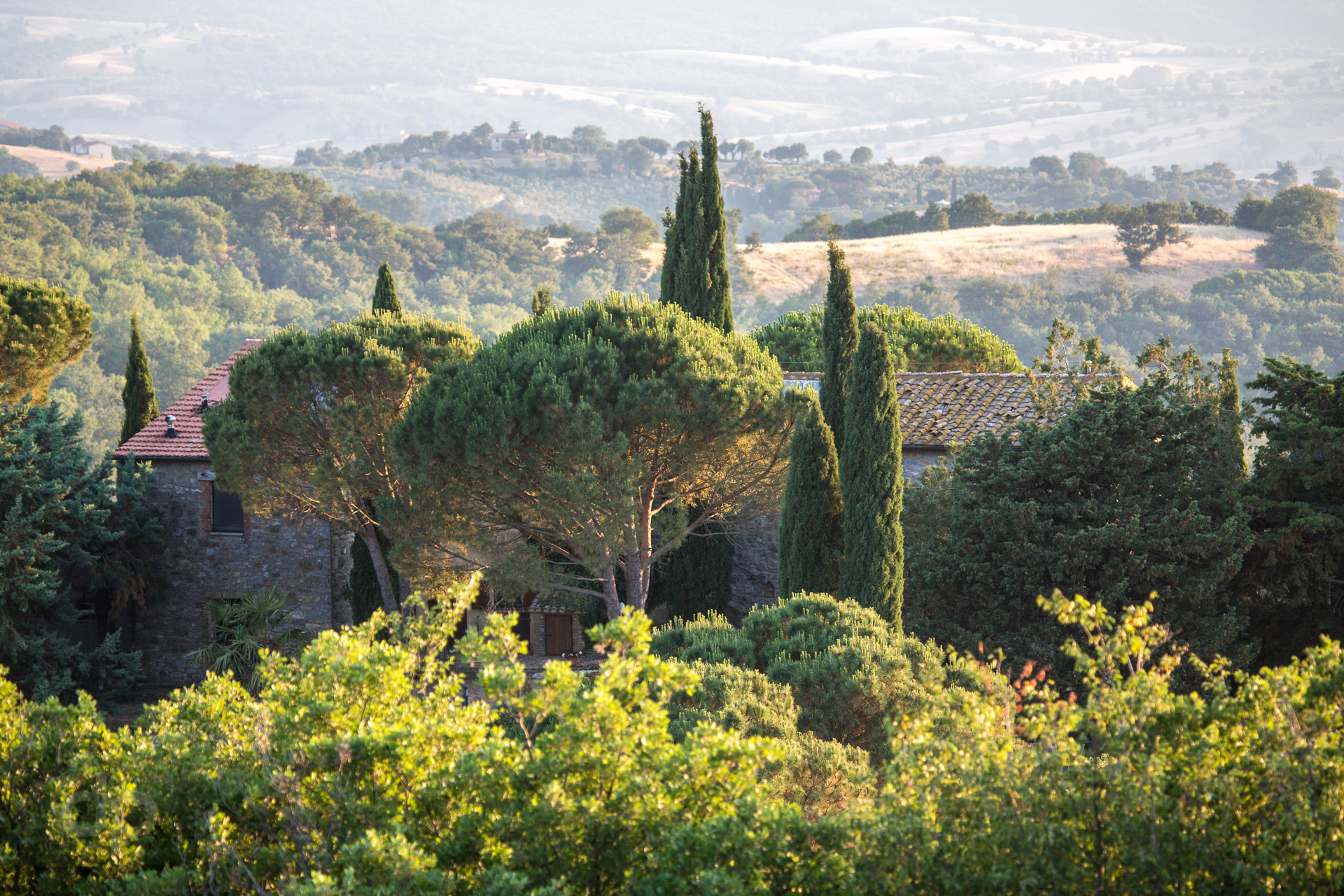 In der wunderschönen Südtoscana, im Hinterland von Grosseto, liegt in sanfter Hügellandschaft auf 550 Höhenmetern unser Anwesen. Etwa 40 Kilometer vom Meer entfernt, wo auch im Hochsommer eine angenehm kühle Brise weht, hat man eine atemberaubende Aussicht auf die Maremma und die toskanischen Inseln Giglio, Monte Christo und Elba.