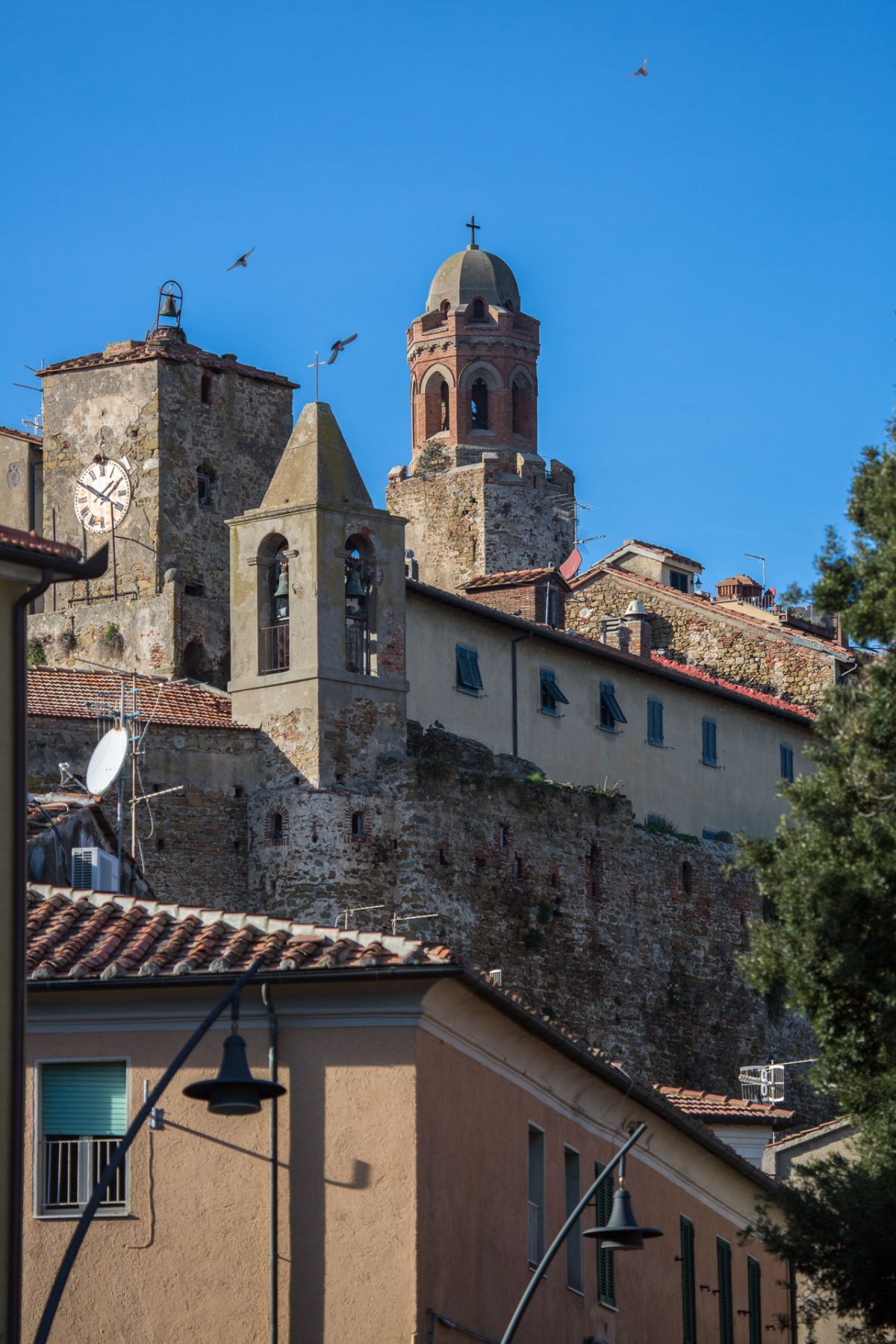 Castiglione della Pescaia consists of a High City built on the hill that ends a chain of hills towards the sea, and of a Low City at the foot of the High City, straddling the drainage canal and marina that form the central part of town.